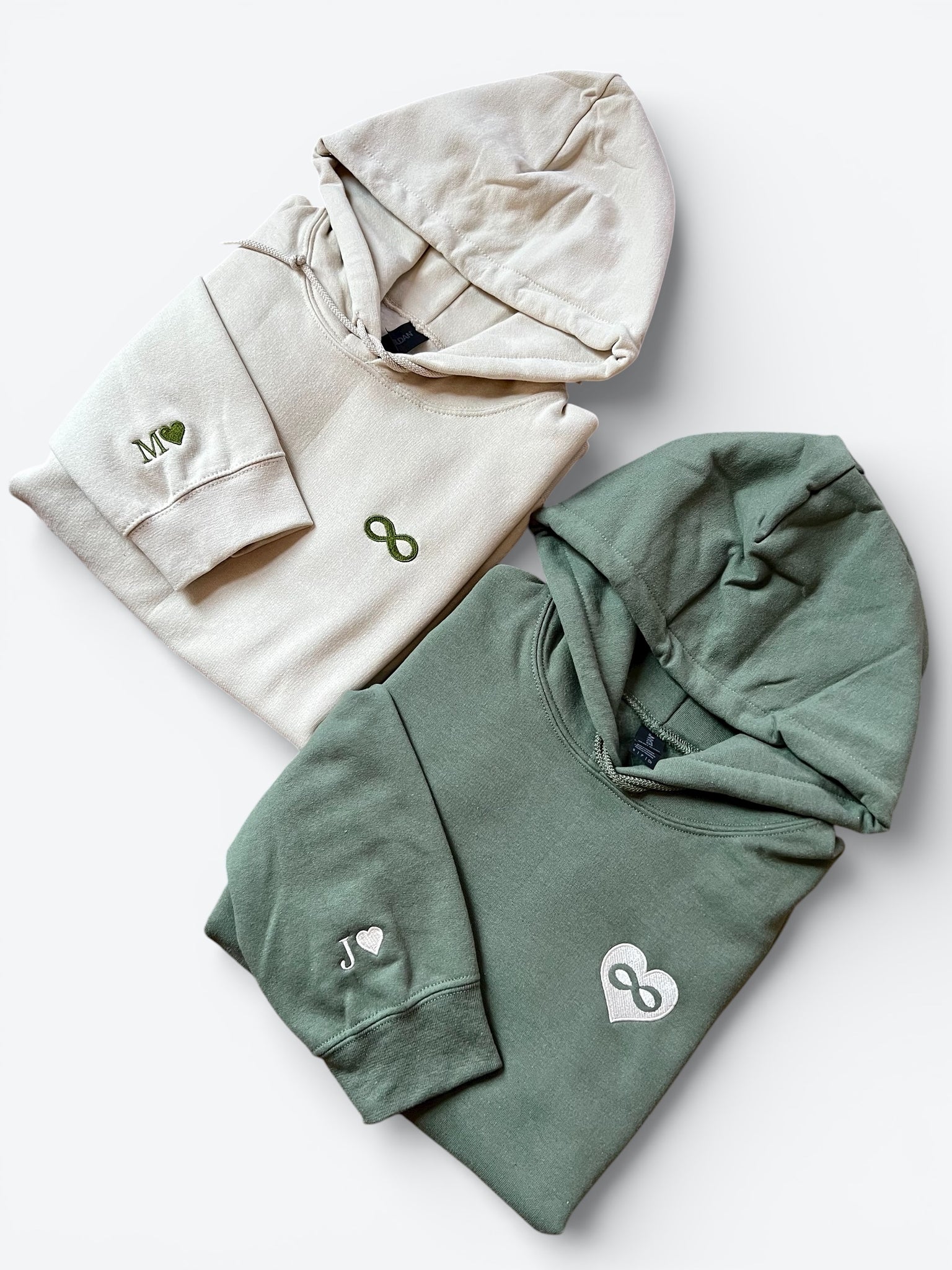 The initial and heart will be embroidered on the left sleeve for hoodies added to your cart.