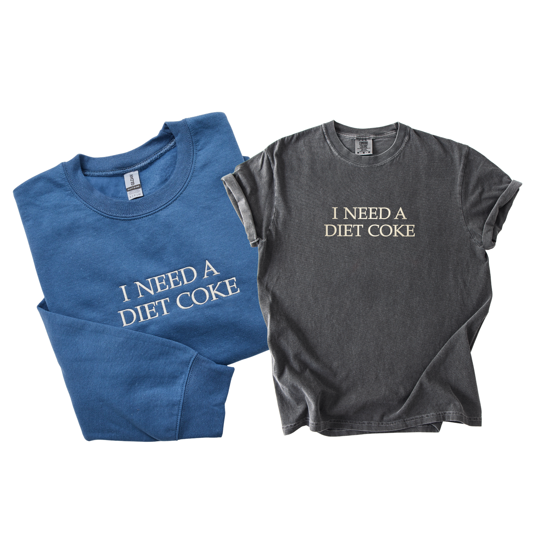 I need a Diet Coke embroidered tee and sweatshirt BOGO bundle! Get our most popular Diet Coke sweatshirt and get the t-shirt 15% OFF!!